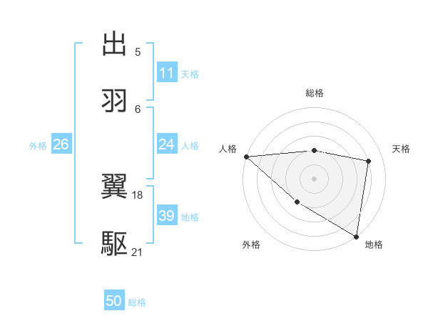 出羽 翼駆さんを姓名の画数から五運を鑑定