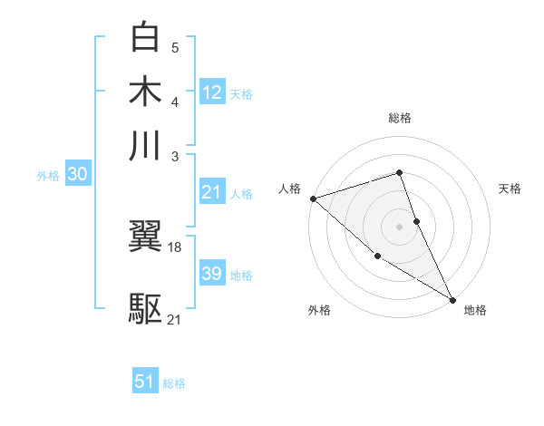 白木川 翼駆さんを姓名の画数から五運を鑑定