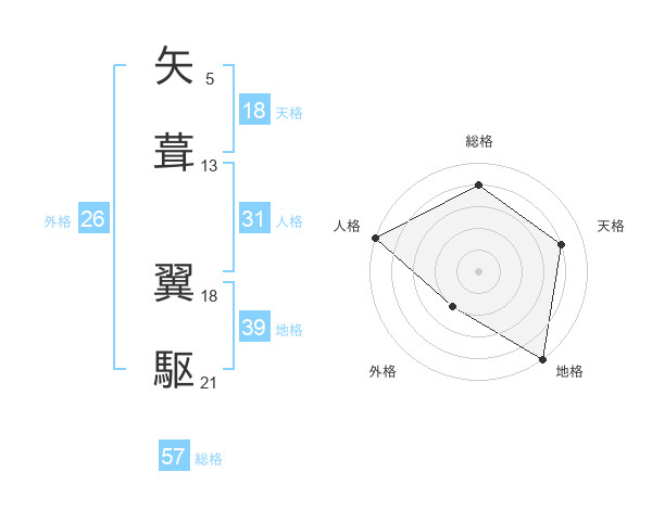 矢葺 翼駆さんの総格は57画の4点!