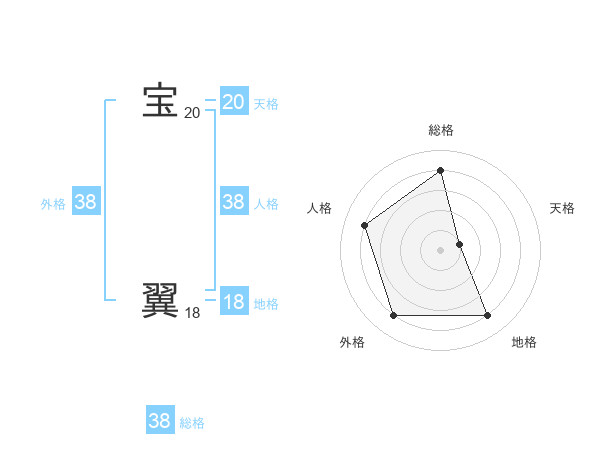 宝 翼さんの総格は38画の4点!