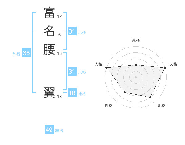富名腰 翼さんの総格は49画の2点!