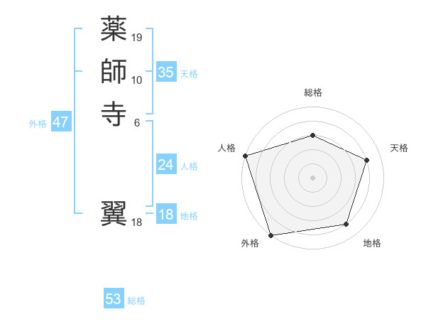 薬師寺 翼さんの外格は47画の5点!