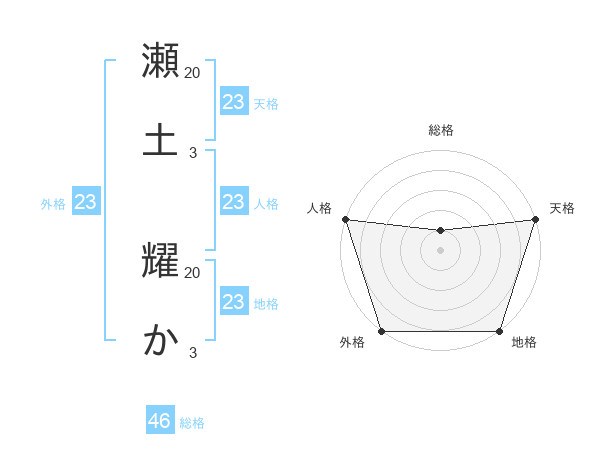 瀬土 耀かさんの天格は23画の5点!