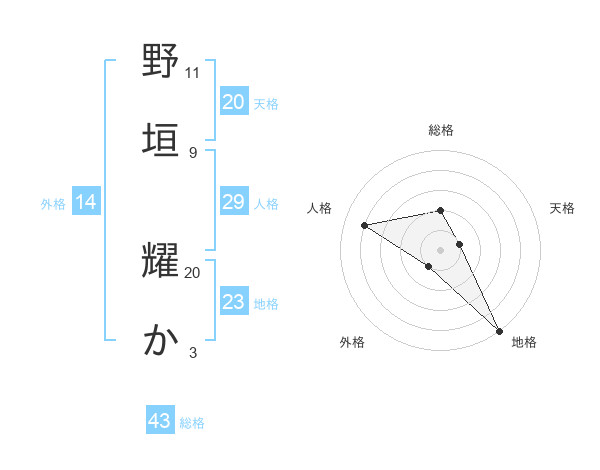 野垣 耀かさんを姓名の画数から五運を鑑定