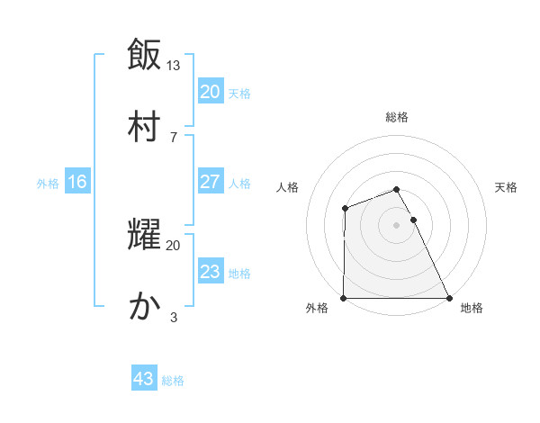 飯村 耀かさんを姓名の画数から五運を鑑定