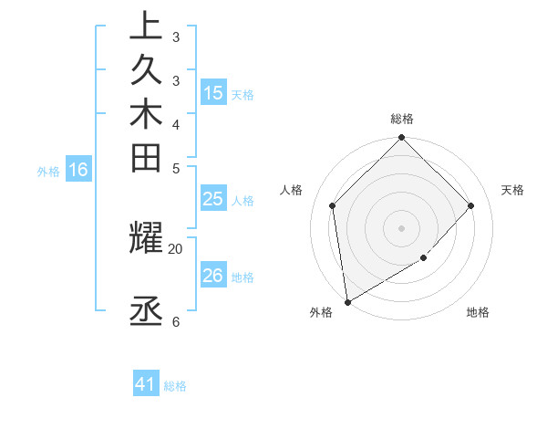 上久木田 耀丞さんを姓名の画数から五運を鑑定