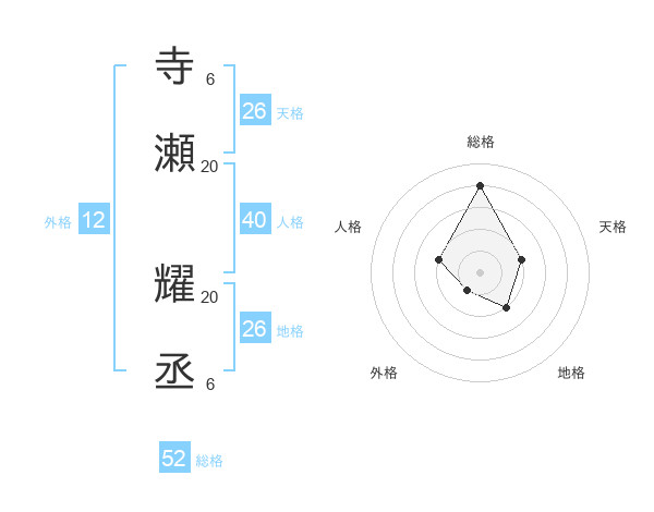 寺瀬 耀丞さんの総格は52画の4点!