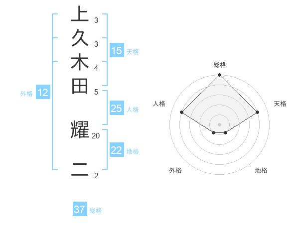 上久木田 耀二さんの総格は37画の5点!