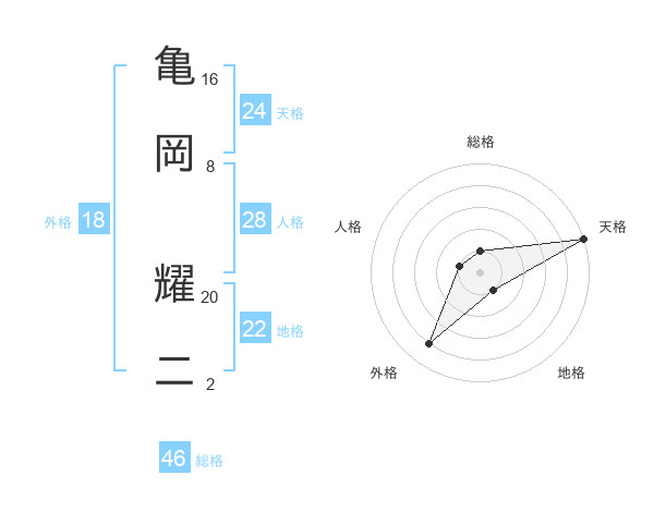 亀岡 耀二さんを姓名の画数から五運を鑑定