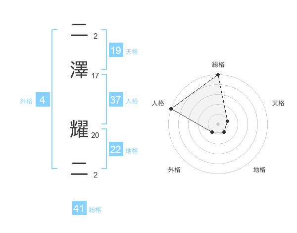 二澤 耀二さんの総格は41画の5点!