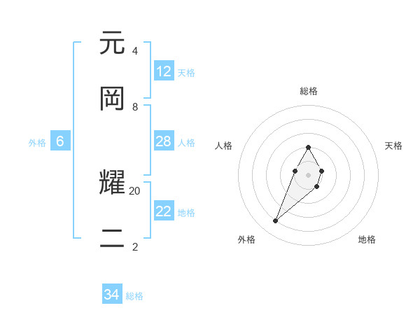 元岡 耀二さんを姓名の画数から五運を鑑定