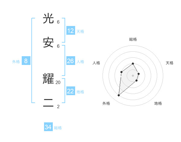 光安 耀二さんの天格は12画の1点!