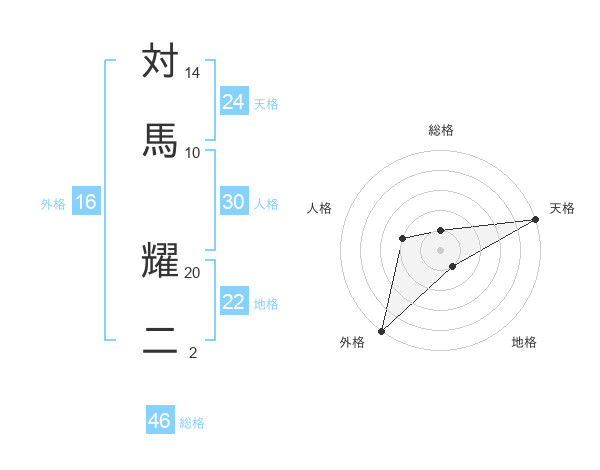 対馬 耀二さんの天格は24画の5点!