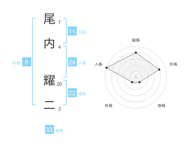 尾内 耀二さんを姓名の画数から五運を鑑定