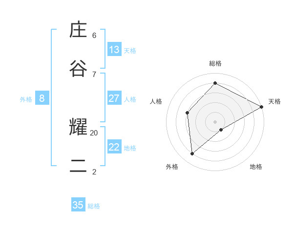 庄谷 耀二さんを姓名の画数から五運を鑑定