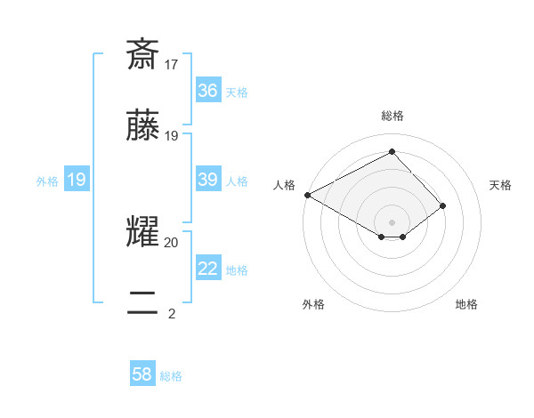 斎藤 耀二さんの総格は58画の4点