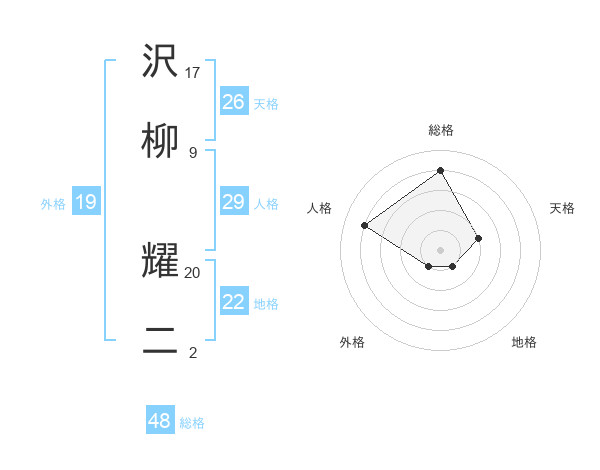 沢柳 耀二さんの総格は48画の4点!