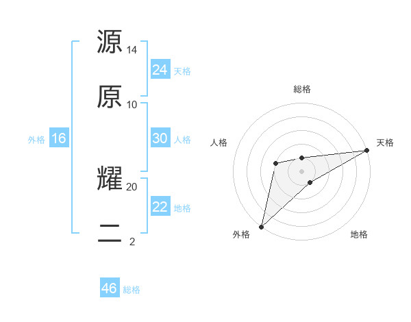 源原 耀二さんの天格は24画の5点!