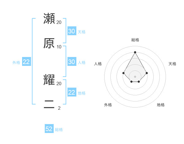 瀬原 耀二さんを姓名の画数から五運を鑑定