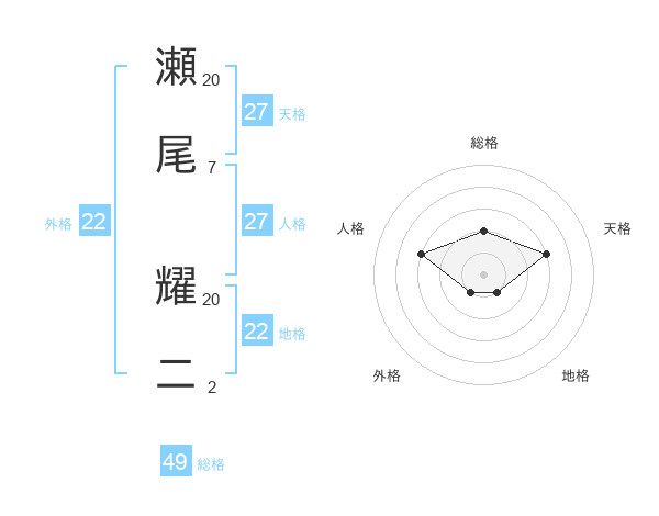 瀬尾 耀二さんの総格は49画の2点!