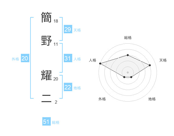 簡野 耀二さんを姓名の画数から五運を鑑定