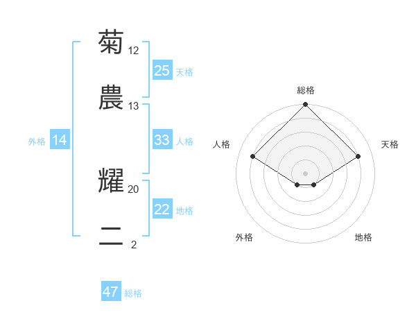 菊農 耀二さんの総格は47画の5点!