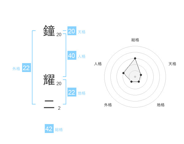 鐘 耀二さんを姓名の画数から五運を鑑定