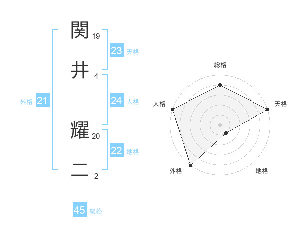 関井 耀二さんの天格は23画の5点!