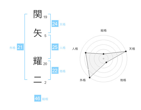 関矢 耀二さんの天格は24画の5点!