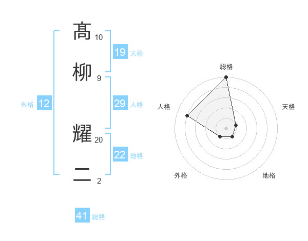 髙柳 耀二さんを姓名の画数から五運を鑑定
