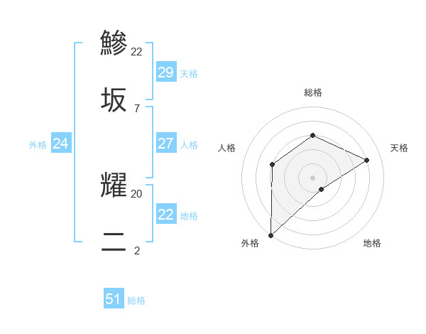 鰺坂 耀二さんを姓名の画数から五運を鑑定