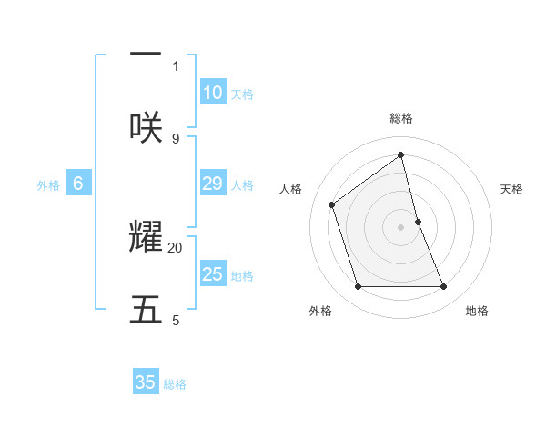 一咲 耀五さんの総格は35画の4点!