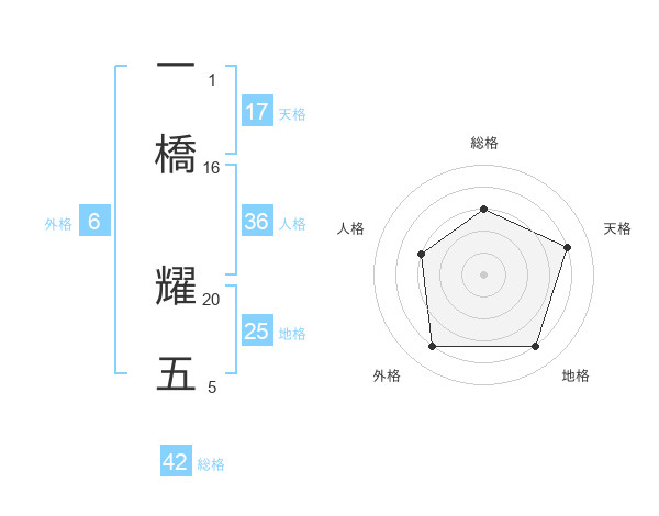 一橋 耀五さんを姓名の画数から五運を鑑定