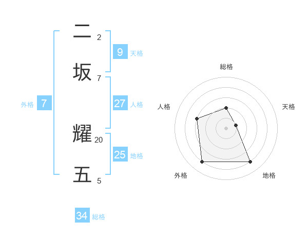 二坂 耀五さんを姓名の画数から五運を鑑定