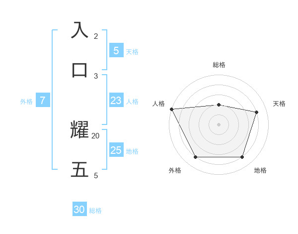 入口 耀五さんの総格は30画の2点!