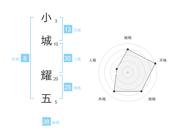 小城 耀五さんの総格は38画の4点!