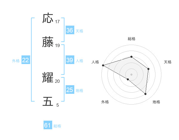 応藤 耀五さんの総格は61画の3点!