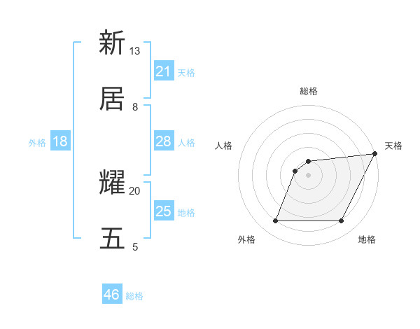 新居 耀五さんの天格は21画の5点!