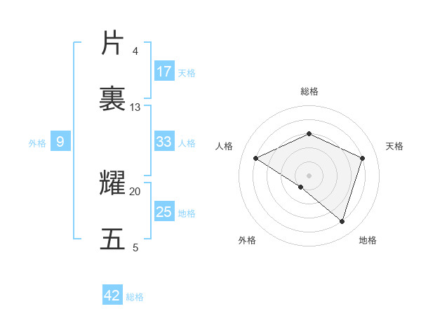 片裏 耀五さんを姓名の画数から五運を鑑定