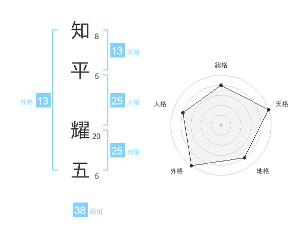 知平 耀五さんの総格は38画の4点!