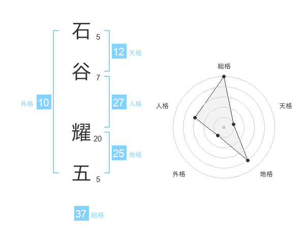 石谷 耀五さんの総格は37画の5点!