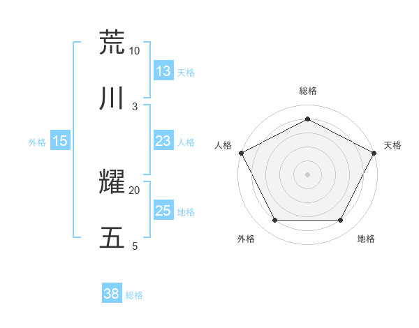 荒川 耀五さんを姓名の画数から五運を鑑定