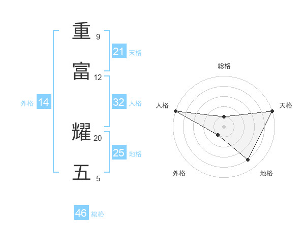 重富 耀五さんの総格は46画の1点!