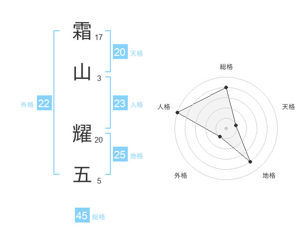 霜山 耀五さんの総格は45画の4点!