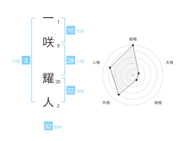 一咲 耀人さんの総格は32画の5点!