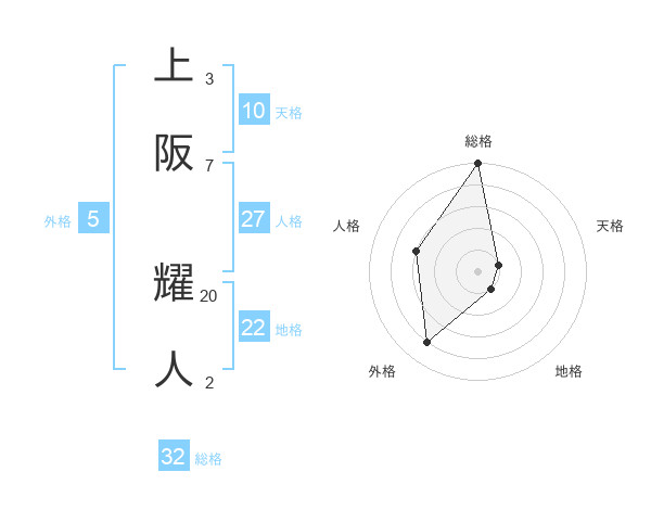 上阪 耀人さんの総格は32画の5点!