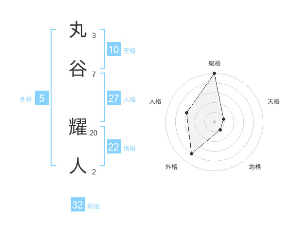 丸谷 耀人さんを姓名の画数から五運を鑑定