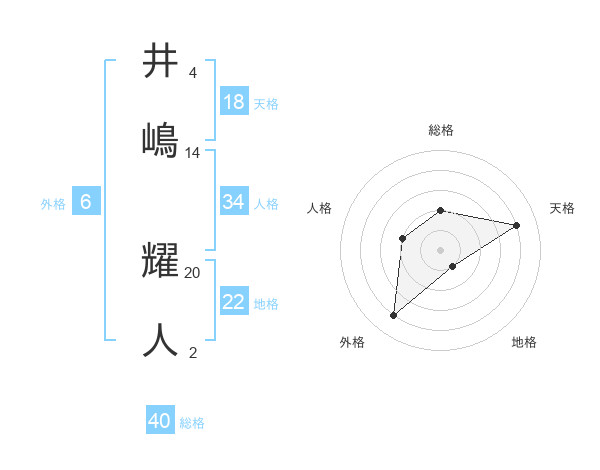 井嶋 耀人さんの外格は6画の4点!