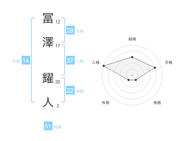冨澤 耀人さんの総格は51画の3点!