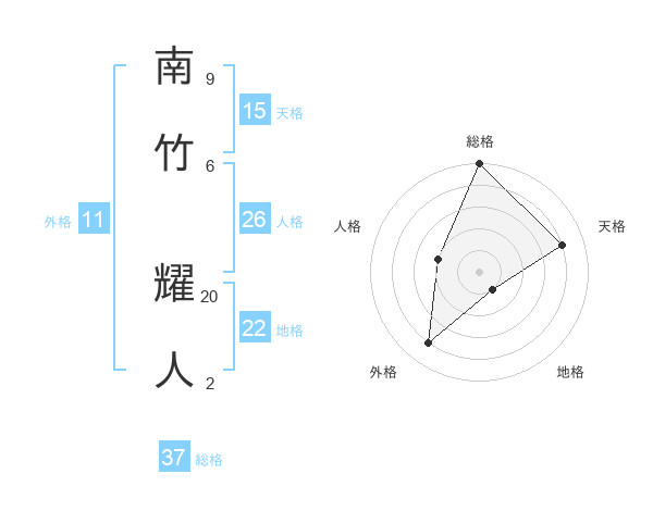 南竹 耀人さんの総格は37画の5点!